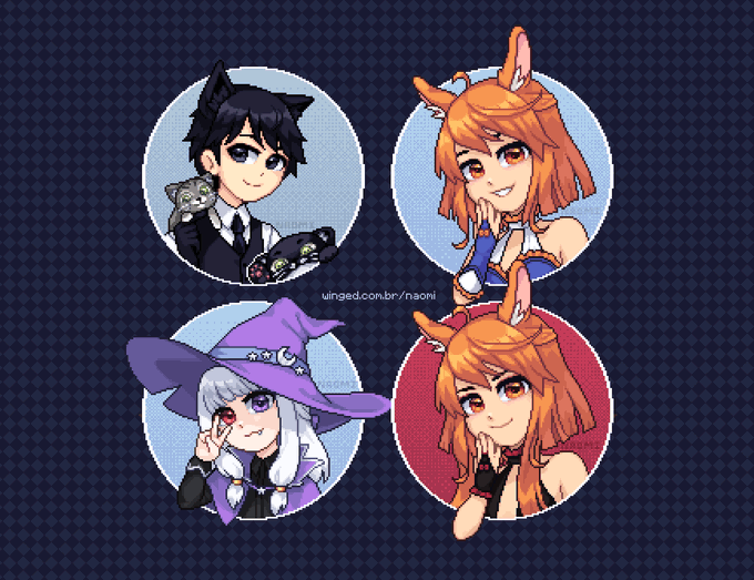 Icon commissions for @/Daxlian, @/kittysnes and a Ko-Fi user and a gift for @/matheuus_arts 💙 Icon commissions open at ko-fi.com/naomi_wgd/comm… #pixelart #ドット絵 #daxliart #kiyomillust