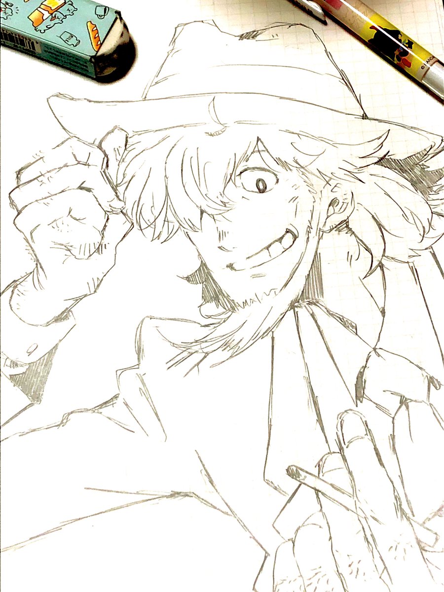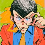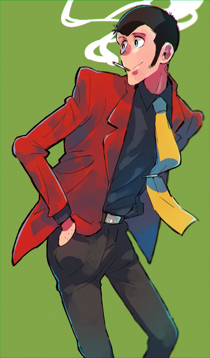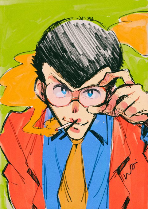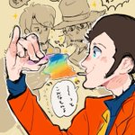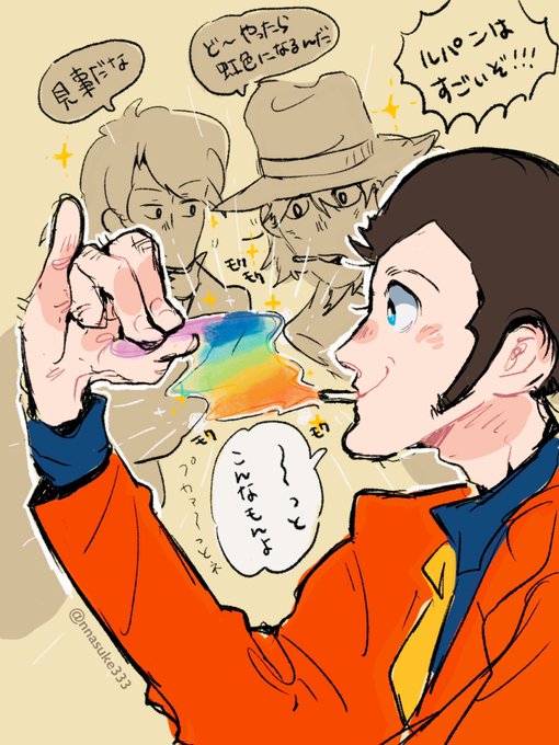 #ルパン三世版深夜の真剣お絵描き60分一本勝負 お題「虹」「光」 ということで……… 虹色🌈のキラキラ光るもくもく🚬を出すなんでもできるルと、すげ〜って見てるふたり (60分クオリティーーー!!!!🤦🤦🤦) (しかも謎🤣🤣🤣🤣🤣)