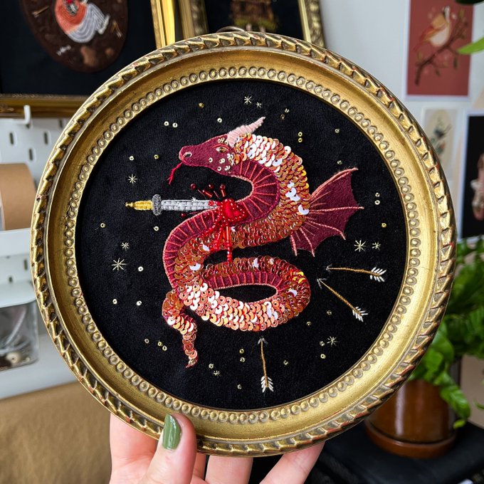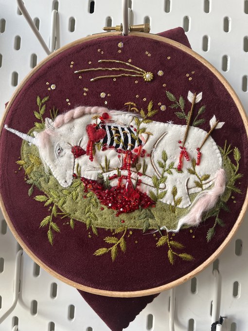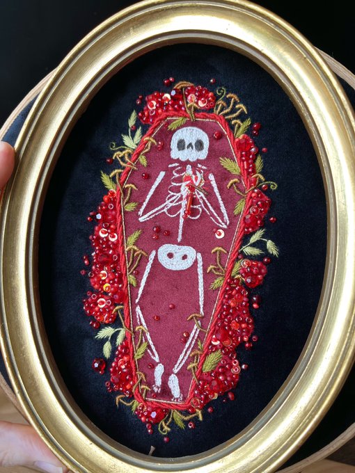 This beadwork came out perfectly as the blood/floral arrangement I was hoping for, an ode to Dracula is finally ready to be framed and I’m so happy with it twitter.com/nnaturenurture…