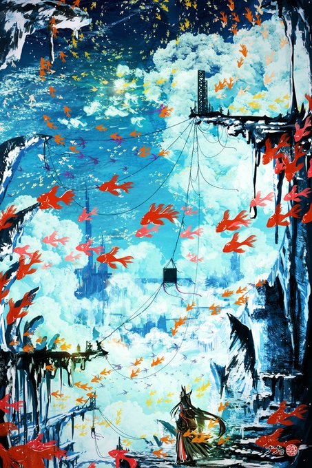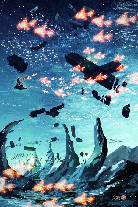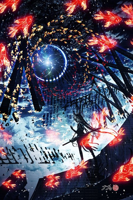 29 223 百鬼夜行…いや金魚の群か #イラスト 23/08/10 18:38