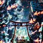 「ごみごみした世界」 鳥居の上でゆるりと休憩 #イラスト #illustrator
