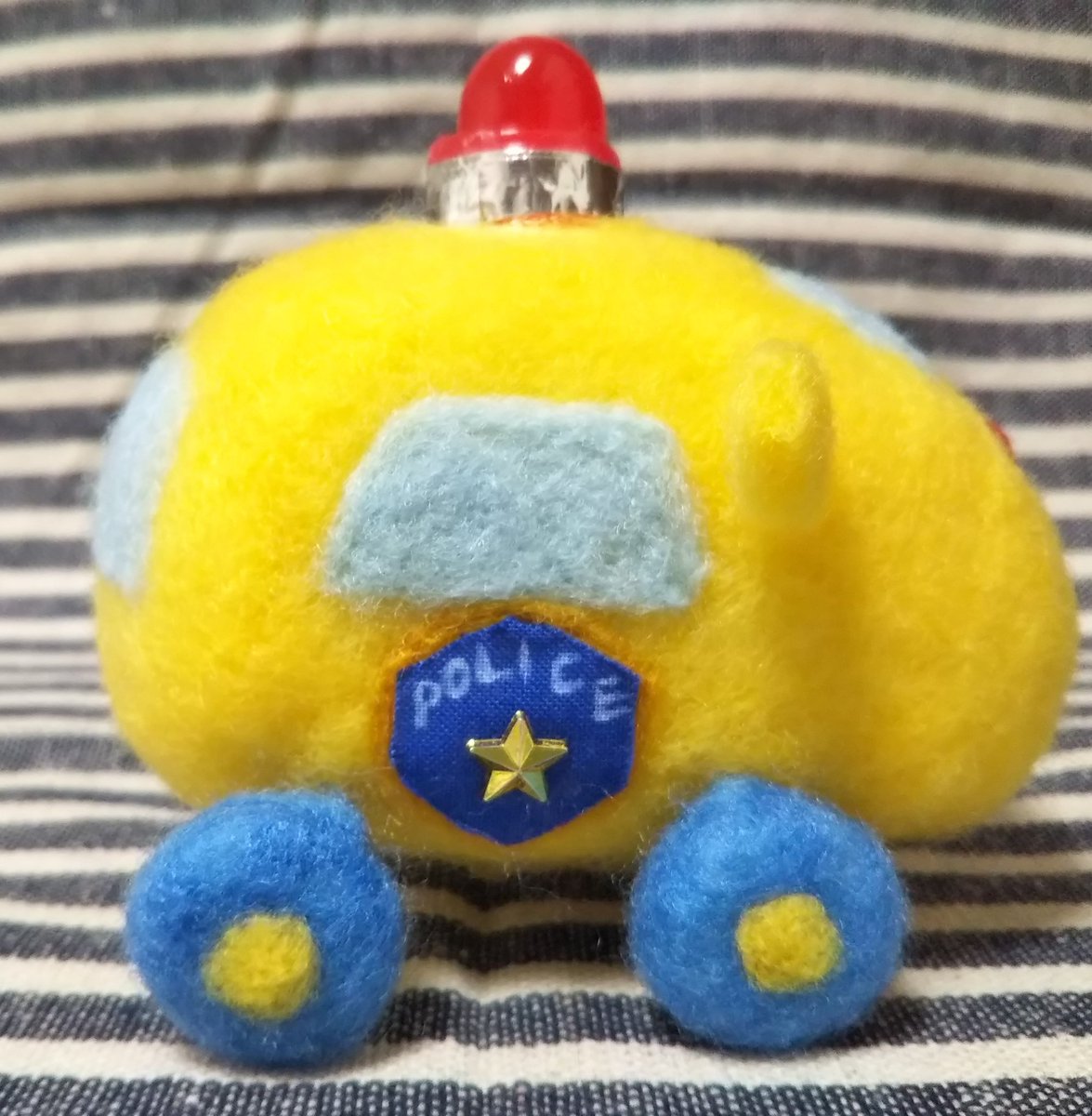 火傷や流血等々、色々ありましたが何とかパトモルカーちゃんが出来上がりました パトランプは取り外せるので余力がある時に調整したいかも 救急ちゃんと「はたらくくるま」なツーショット😃❤️😃 #モルカー #モルカーファンアート 参考になるかわかりませんが、使った材料や道具も投稿しときます
