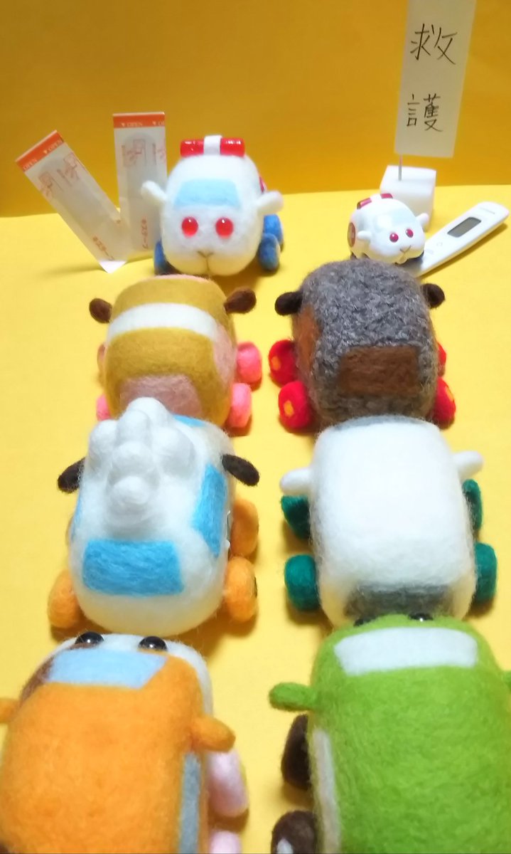 5 30 火傷や流血等々、色々ありましたが何とかパトモルカーちゃんが出来上がりました パトランプは取り外せるので余力がある時に調整したいかも 救急ちゃんと「はたらくくるま」なツーショット😃❤️😃 #モルカー #モルカーファンアート 参考になるかわかりませんが、使った材料や道具も投稿しときます 21/06/18 18:02