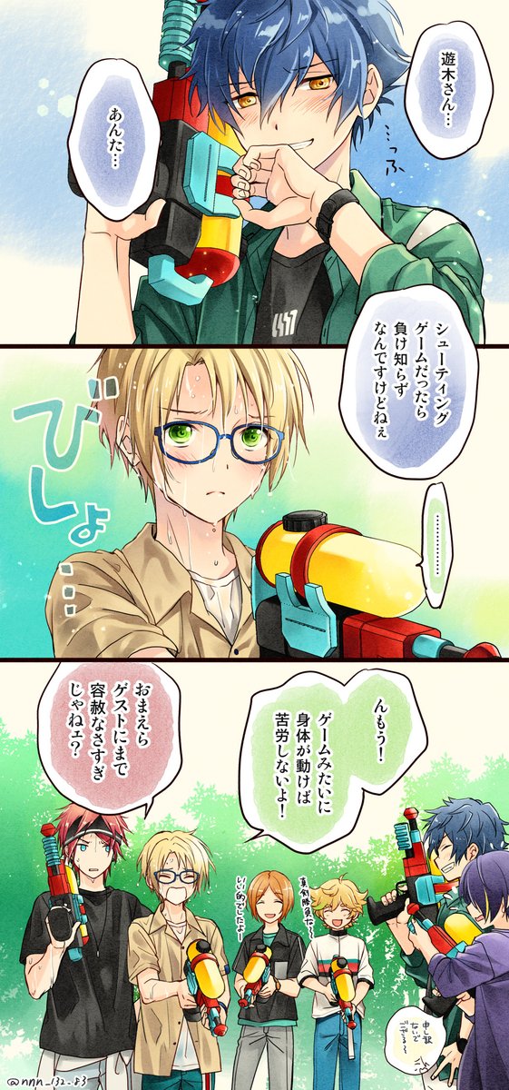 379 1604 お題箱リク「玩具の銃突き付けあってるジュンくんとゆうくん」 笑顔で、ってあったけど笑ってるの(悪い顔して)ジュンくんだけになっちゃった…笑 23/03/08 19:09