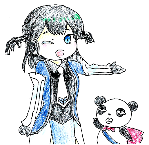 色鉛筆らくがき そらさんと某パンダ。 #駅メモファンアート