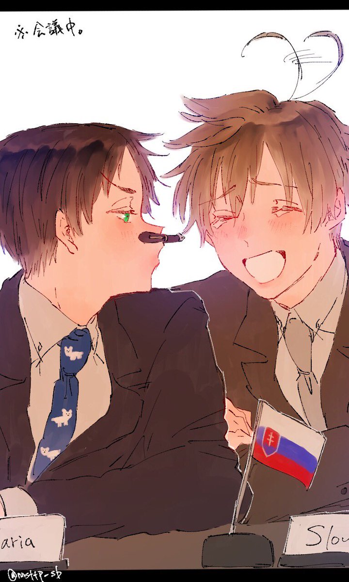 #APHワンドロ版深夜創作60分一本勝負 @Hetalia_1daw ひとりみ男子とひとみしり男子でにらめっこ マジで怒られる5秒前