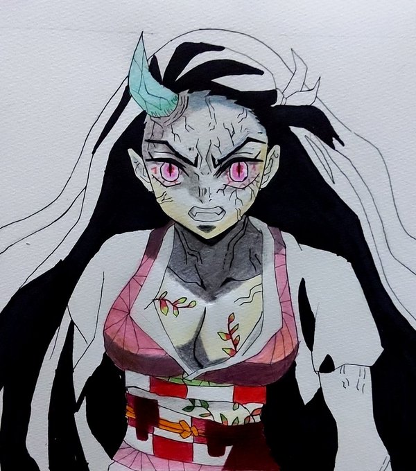 途中で終わった竈門禰豆子… #鬼滅の刃イラスト #色鉛筆イラスト #模写イラスト #イラスト好きな人とつながりたい