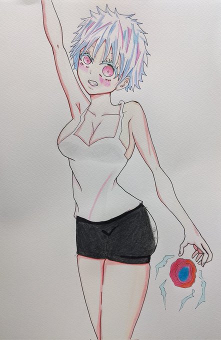 イヤホン片方無くしてショック受けてしまい、絵を描く気分でなくなったので過去絵載せときます(泣)💦😢 #呪術廻戦 #五条悟 #オリジナルイラスト #コピック #色鉛筆イラスト #領域展開