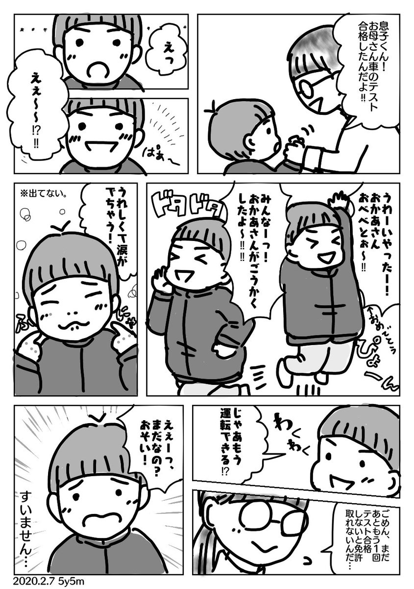 1 10 先日仮免合格の報告をした時の息子氏が可愛かったので見てください… (最近嬉し涙の存在を知ったようで、再現しようとしてて草不可避でした🤣www) #育児漫画 #徒然育児絵 #ののぱ育児記録 #息子氏はピースフル大使 20/02/09 12:14