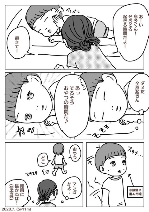 4 21 お目覚めの合言葉🕒 #ののぱ育児記録 #息子氏はピースフル大使 #育児漫画 #徒然育児絵 20/08/04 22:44