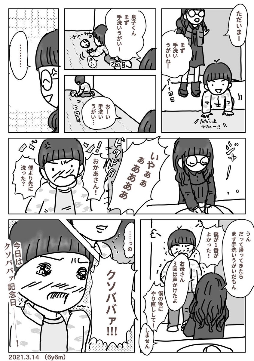 1 25 言われて怒るより先に(おぉ〜〜〜⁉︎ついについに?クソババァキターーー(°▽°)!!!)って妙な感動の方が先に来た。ほんと、良くも悪くも色々吸収してくるなぁ🤣💨 #ののぱ育児記録 #育児漫画 #徒然育児絵 21/03/14 23:46