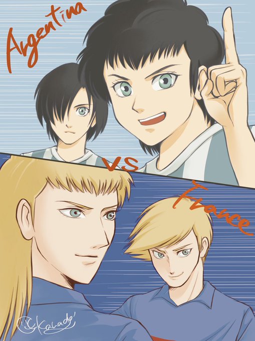 凹んでる時はお絵描きがススムくん…_φ(・_・ ワールドカップ決勝になぞらえて、キャプテン翼キャラ描きました(再び)⚽ ピエール失敗したな…🥲💦 #イラスト #キャプテン翼 #落書きに毛が生えたものですすみません #どちらもナイスガッツ👍