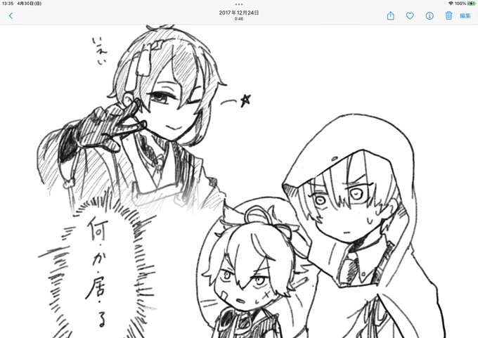 0 4 ジョ伝現地で初見した時、居るはずのない三日月宗近が居た(後ろ姿)ことに動揺して描いた落書き出てきた…… 2017年の私へ ウィンクするhr近をスクリーンで見れます。 2023年の私より 23/04/30 13:36