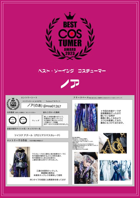 お知らせ🥳🥳🥳🐙🐙 この度 #ベストコスチューマー2023春 のソーイング部門をグロマス🐙ちゃんで受賞しました。 これで2部門梯子とはなりますが連続3回受賞したので殿堂入りになるのかな?1部門で連続3回?わからんけど沢山見てくれてありがとうございました!🐙🐙