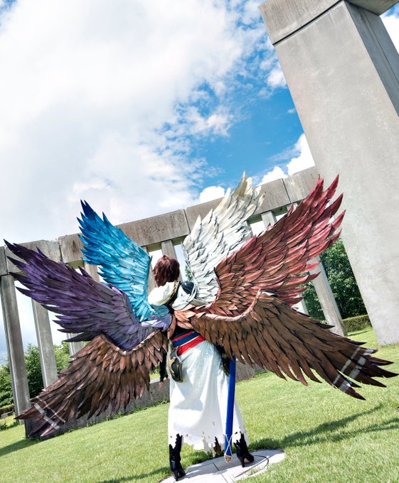 全てを薙ぎ払う6枚羽根、カニ歩きしか出来ないし重力と常に戦ってる。 部屋から出す為に家具何個か解体した。 #グラブル衣装を実際に着てみてわかったこと twitter.com/i/web/status/1…