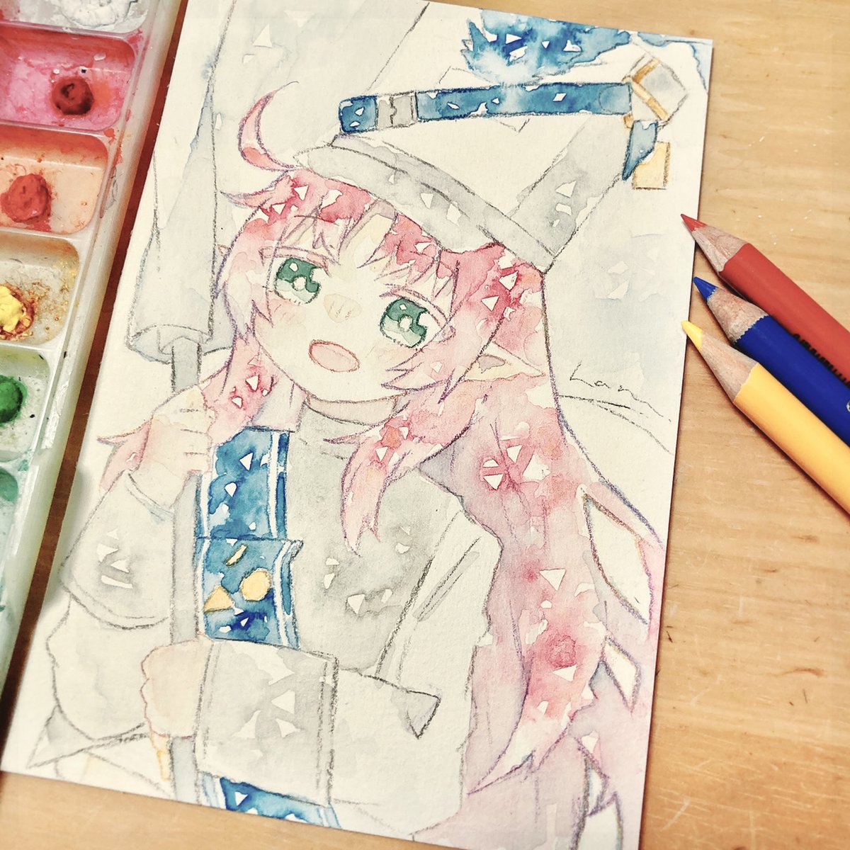 リアタイ出来なかったけど配信観ながら透明水彩でワンドロ〜! デビル名取かわいい👿 #名取ワンドロ