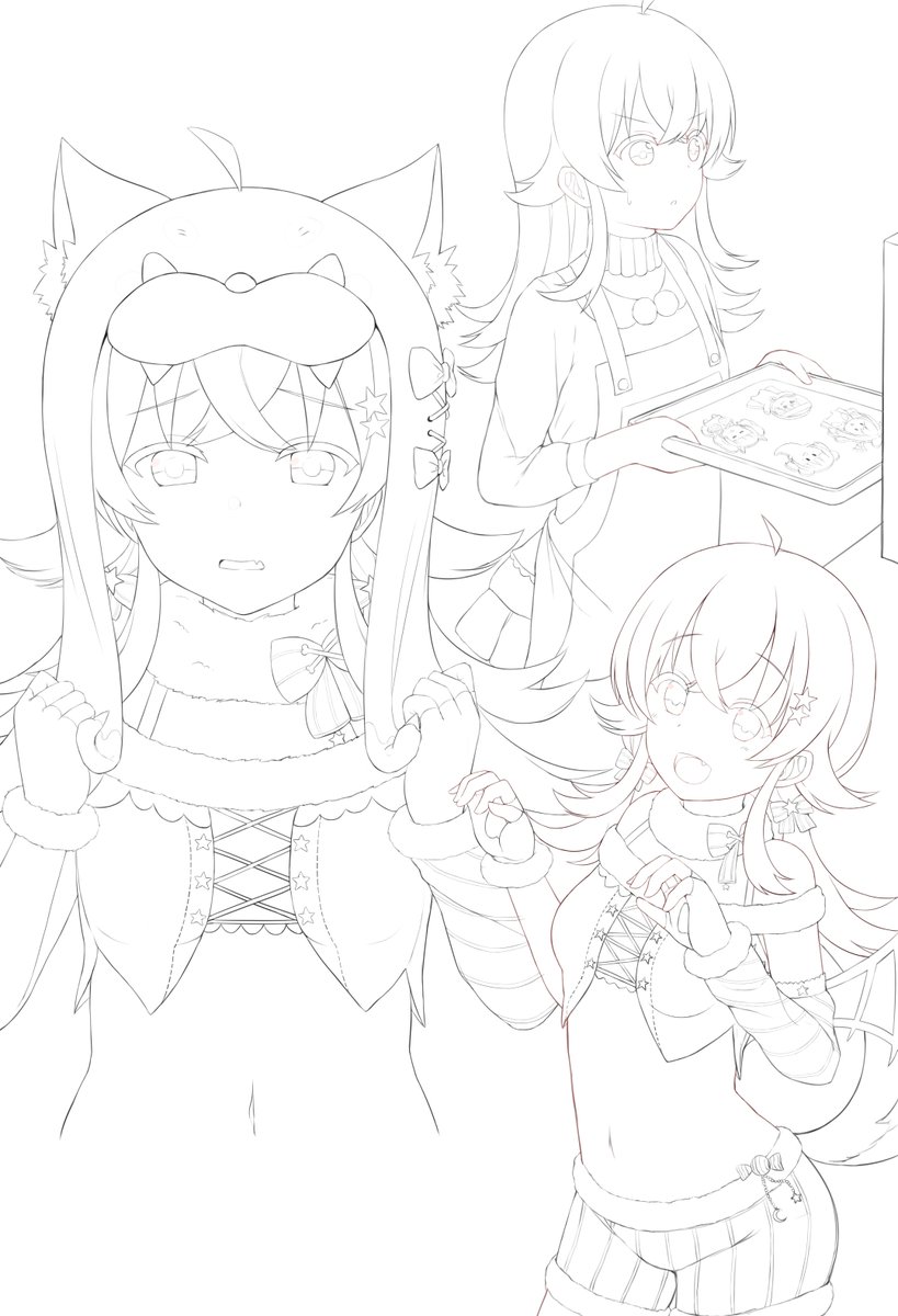 #皆さん線画と塗った後を見せてください だいぶ前に描いた果穂