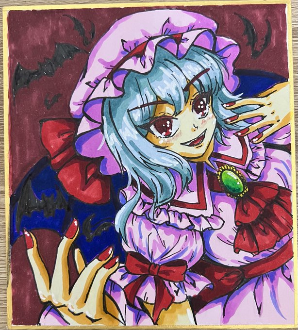 レミリア・スカーレット #東方 #レミリア #東方Project #レミリア・スカーレット #アナログ #色紙 #東方紅魔郷 pixiv.net/artworks/10206…
