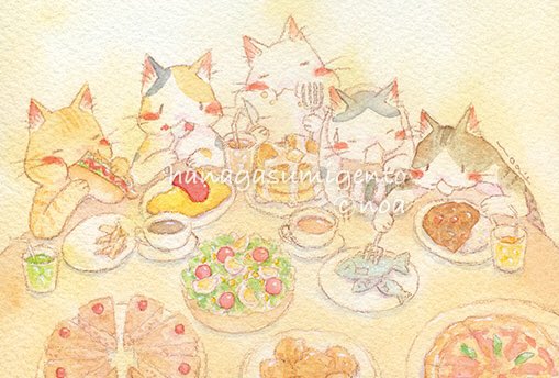 2022.4/27(水)-5/8(日) ※5/2(月)休廊 10:00-17:00 和歌山 @GalleryCafeAQUA 様企画展 「#ネコと暮らす日常3」 コラボメニューかわいい!おいしそう…!✨ 近くなら絶対食べに行ってたのに…! 出展作品で、パンケーキやカレーなどもりもり食べてる絵描きました😺 🐾原画「おいしい時間」 twitter.com/gallerycafeaqu…