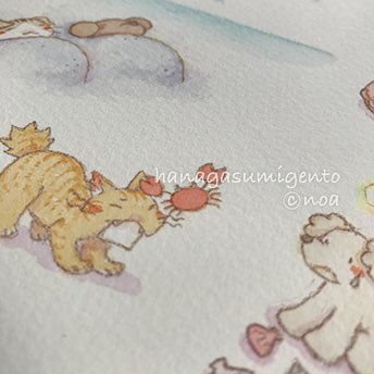 8/5-17 #高円寺 #猫の額 様企画展 「#夏の忘れ物」 12:00-20:00 会期中無休。通販有 www6.speednet.ne.jp/nekojarasi/hpd… 後半戦スタート、残り6日です😺 小さい絵、最初予定してたのは画像1枚目の右下の絵のみでした。 それが色々あって豆本作る事になり、お話考えて、絵を描きました😺 twitter.com/noa_chibifu/st…