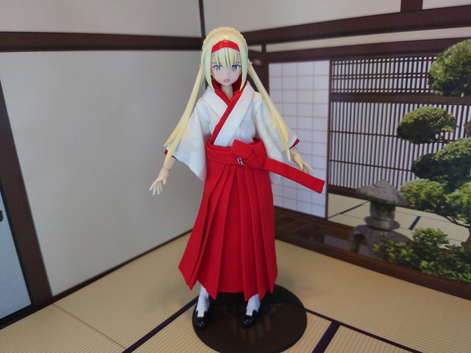 9 43 うちの子が近くの神社の「巫女服が似合う金髪少女部門」で優勝しました。 来年は神社でおみくじ担当らしいです。 #メガミ4周年選手権 #4Bコース完成 #メガミデバイス 20/12/13 19:33