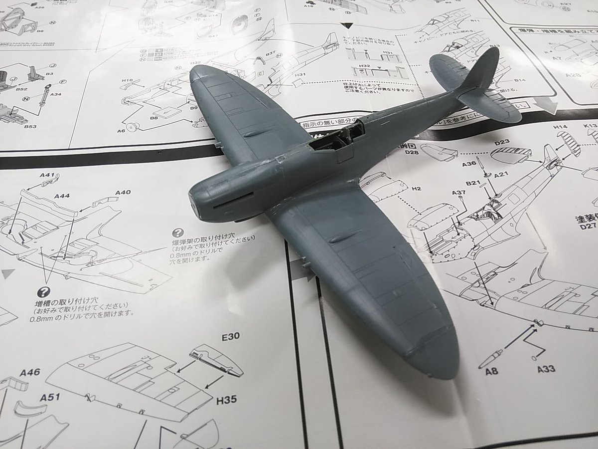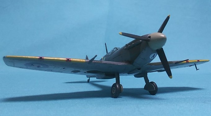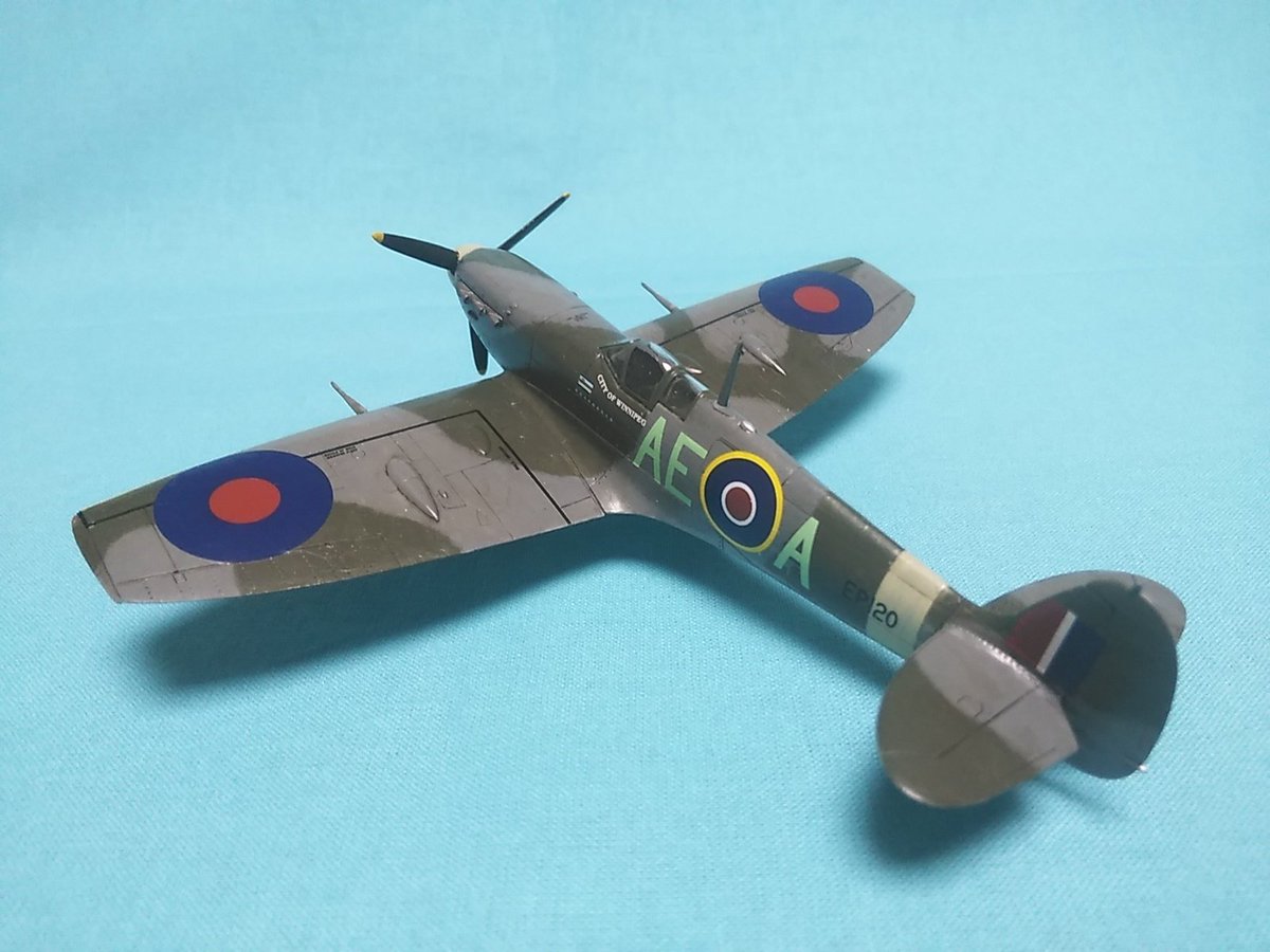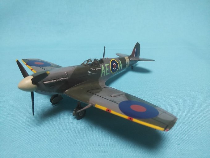レベル 1/72 スピットファイアMk.Vb、完成しました。 個人的にMk.Vは切断翼のイメージがあったので、製作できて満足です。主催のTramokeiさん(@tramokei)をはじめ参加された皆さんお疲れ様でした! #春休みスピット祭り #春休みスピット祭り完成