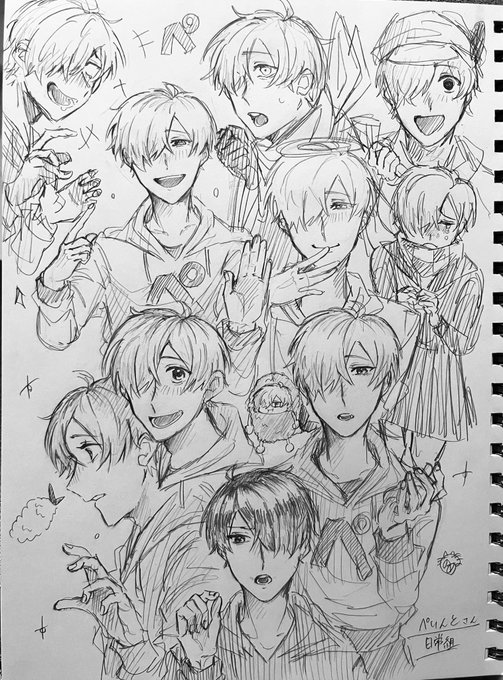 1 30 久しぶりに1枚に沢山のイラスト描きました!!楽しい😉✨ #ぺんちゃんの絵本 23/03/19 19:22