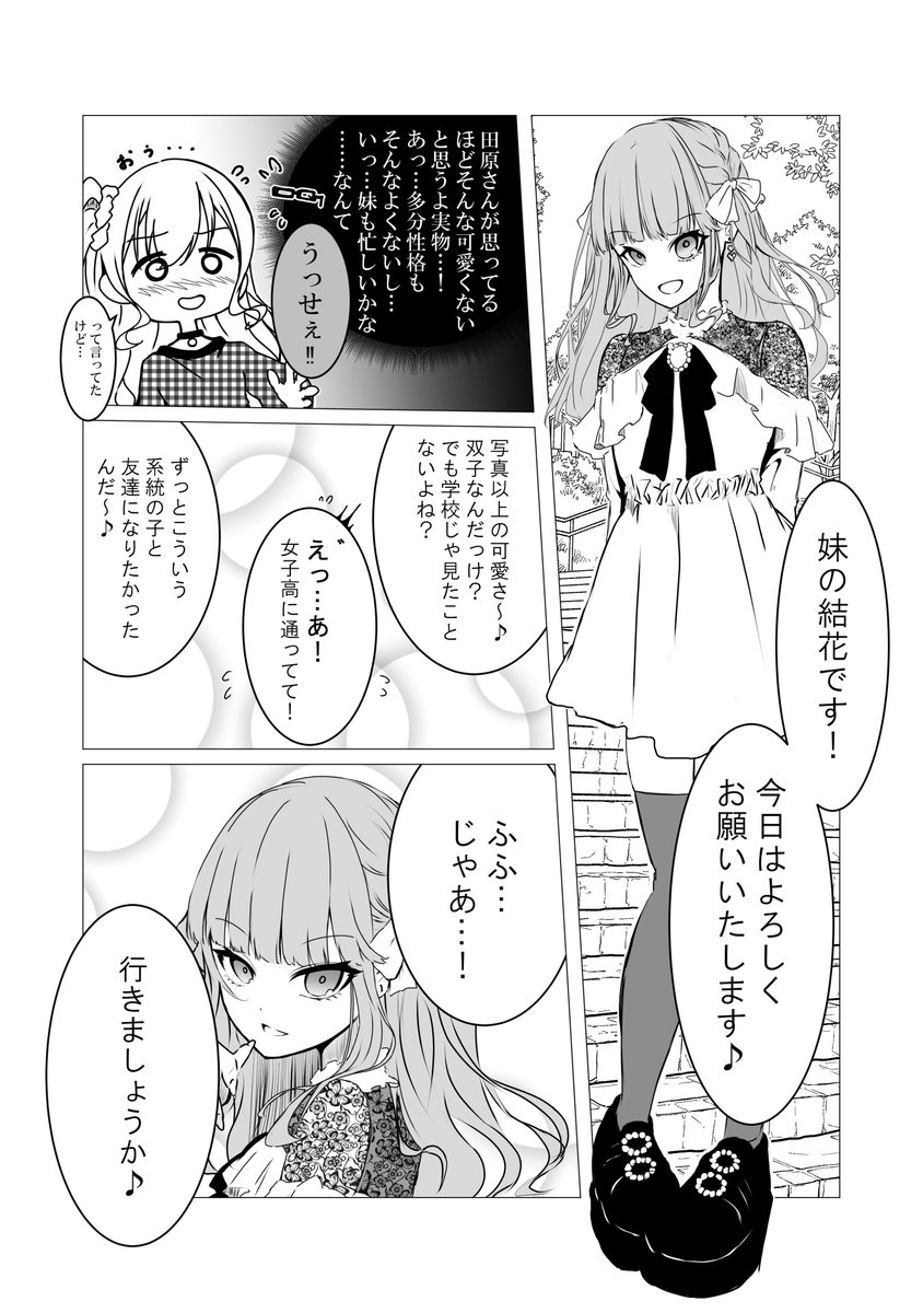 フォロワー増えたので創作もやっているよというマンガです 年末くらいに描いたものです お互いの兄妹(?)に一目惚れする話 #漫画が読めるハッシュタグ #創作