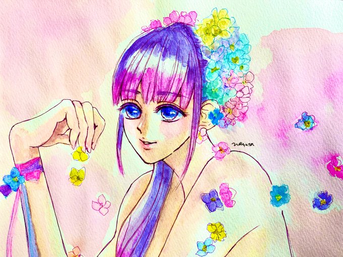 『移ろい』 色を変えてゆく紫陽花の花と 閉ざした心が開いてゆく🌸ヲの心をあわせて お誕生日おめでとう 芯が強くて素直な心を持っている素敵な女の子✨✨ #栗花落カナヲ誕生祭2023 #栗花落カナヲ生誕祭2023