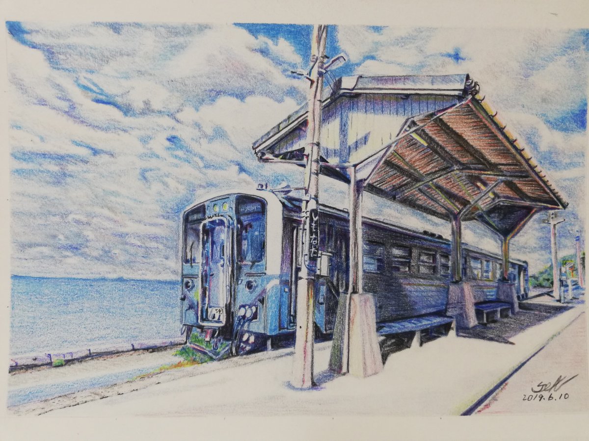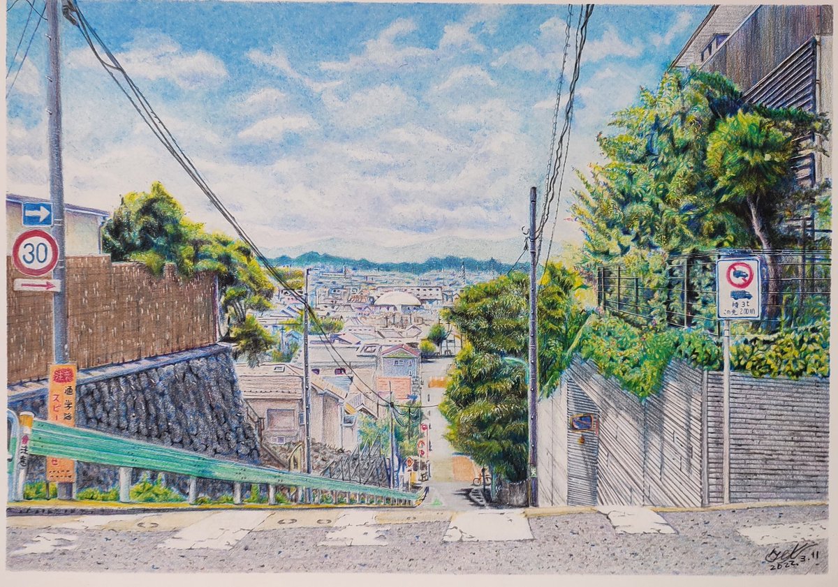#みんなのSNSなんでも展示会2022 色鉛筆で描いた風景画です😊