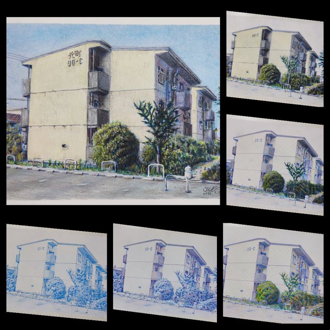 #色鉛筆画 #風景画 #団地 恒例?のメイキングみたいの😁