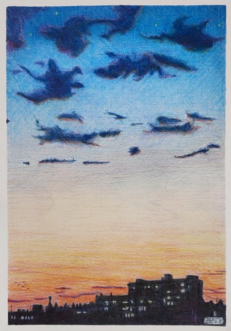 #あなたのみず色の作品を見せてください #色鉛筆画 空ばかりですが😅