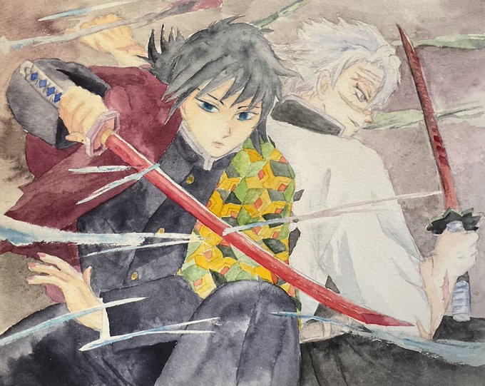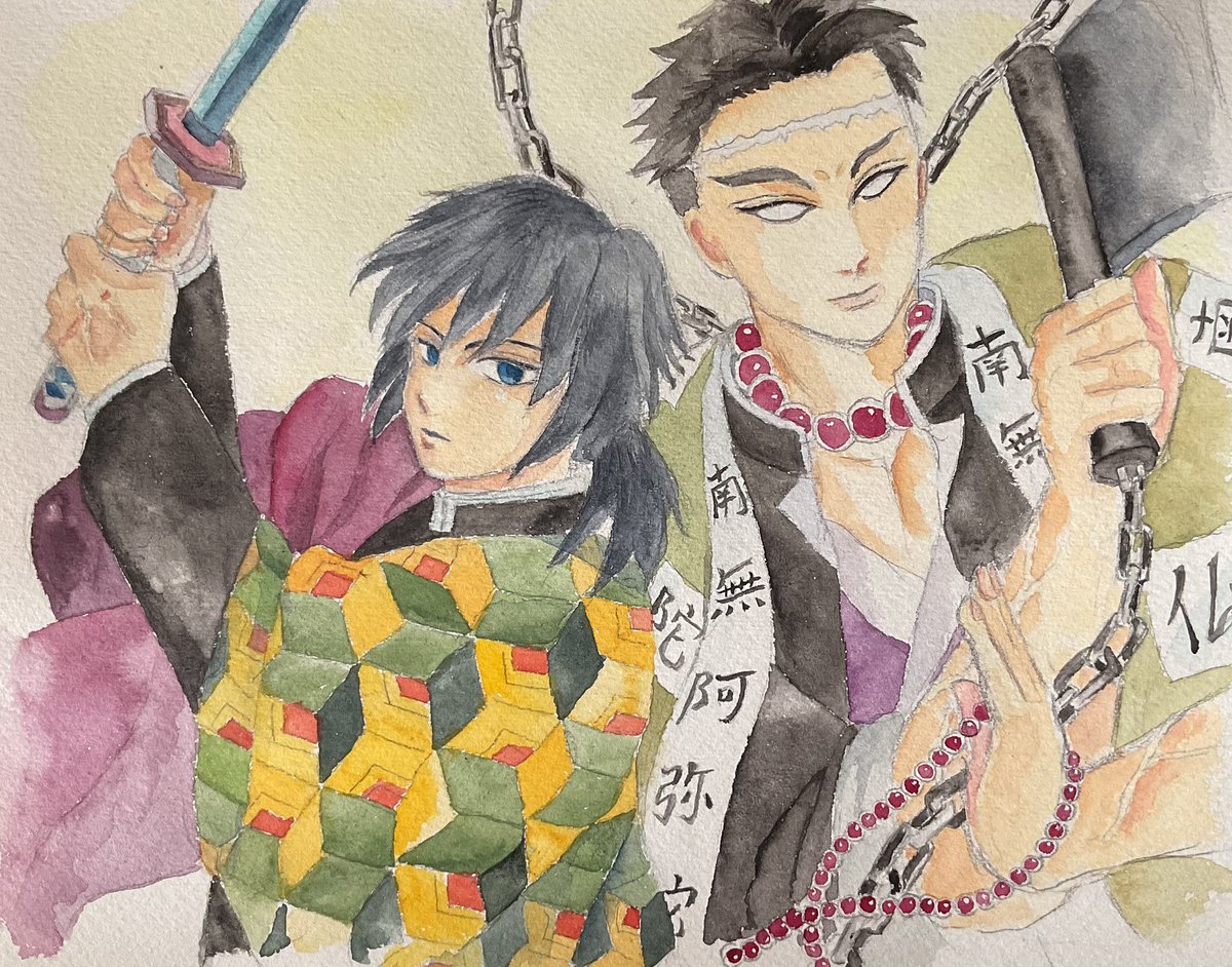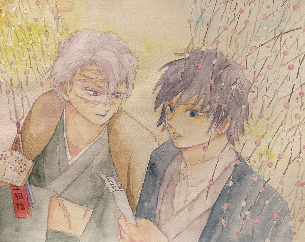 #伊黒小芭内誕生祭2022 #伊黒小芭内生誕祭2022 🐍さんお誕生日おめでとうございます🎉 🍡ちゃんと一緒にいる絵も考えましたが、あえてズッ友からのお祝いで😁 「なんか食いに行くかァ?」 「すまんが先約があるんだ」 「えっ⁈」 「えっ?」