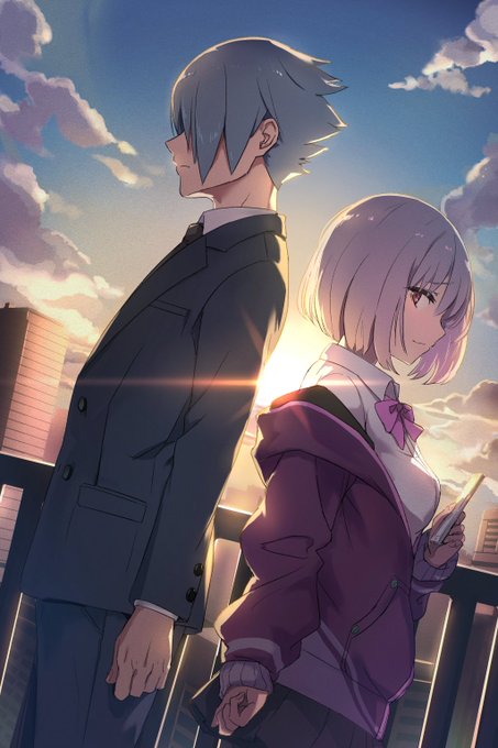 ニューオーダーアカネとナイトくん描きました ナイトくんは髪くしゃられ後です #GRIDMAN_UNIVERSE #SSSS_DYNAZENON #SSSS_GRIDMAN