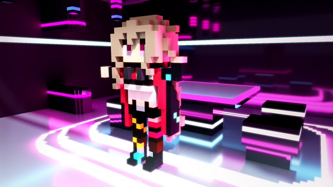 ボクセルめめめ新衣装 四角い箱積み上げても (かっこかわいさ)1/3も伝わらない~ #めめアート #magicavoxel