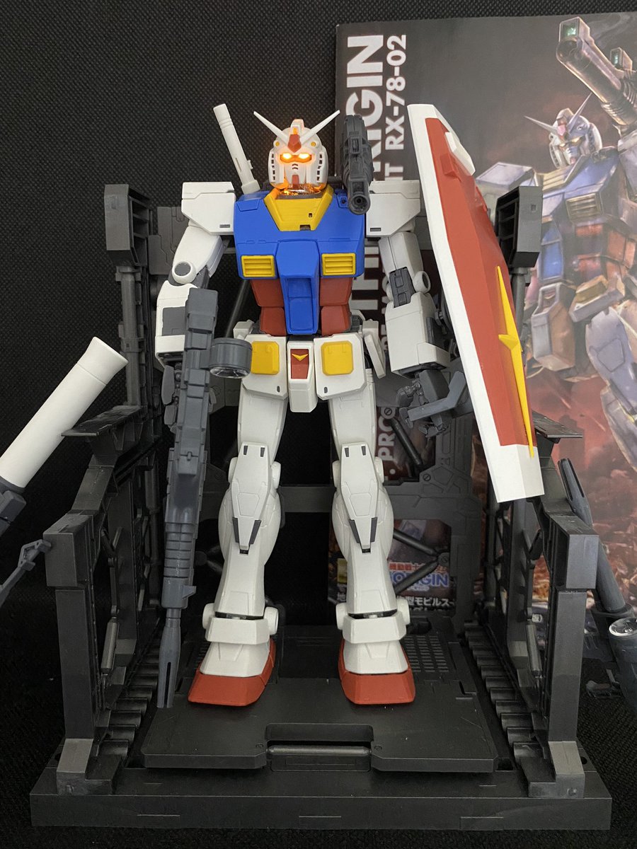 オリジンガンダム アドバイスいただいたおかげでだいぶ光が眼に集まるようになりました まだ漏れがあるので要調整かな 後はデカール貼りと墨入れして仕上げましょ #ガンプラ #ガンプラ好きと繋がりたい