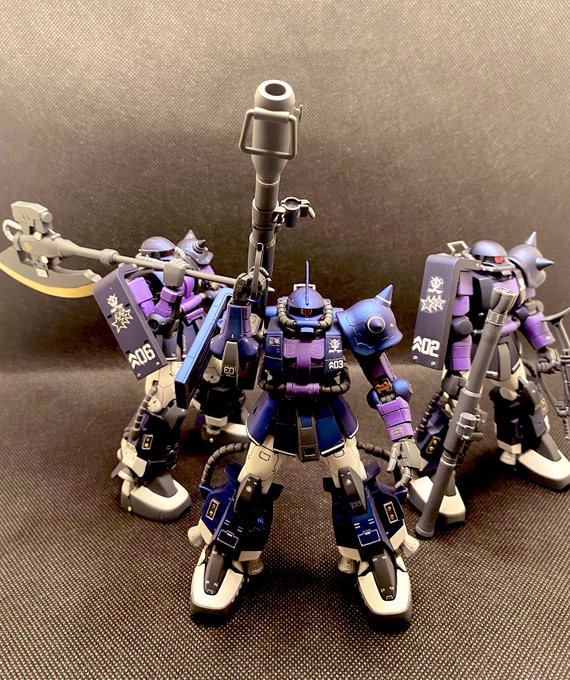 黒い三連星ザク とりあえず完成です 手直ししたい所もあるのでそれはボチボチと #斜め下からの美学 #ガンプラ好きとつながりたい