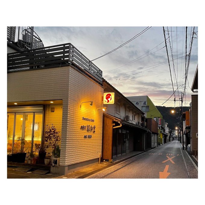 2022.09.14 emotional! 岩国市「菓子司 昭和堂」 以前ロゴのイラストレーションを担当しました。 この度看板にも! 岩国城下町の街並みを照らしています。 #illustration #イラスト