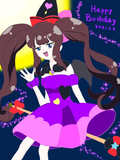 あろまお誕生日おめでとう!💜💜💜💜💜💜💜💜💜💜💜 忙しくてちゃんと描けなくてごめんよ 努力家で真面目で仲間思いなあろまが、みかんとガァルルと今年も幸せでいられますように🤞👼😈🦖🤞 #黒須あろま生誕祭2021