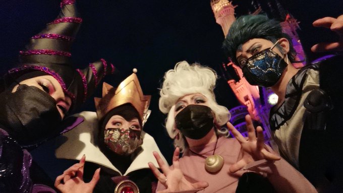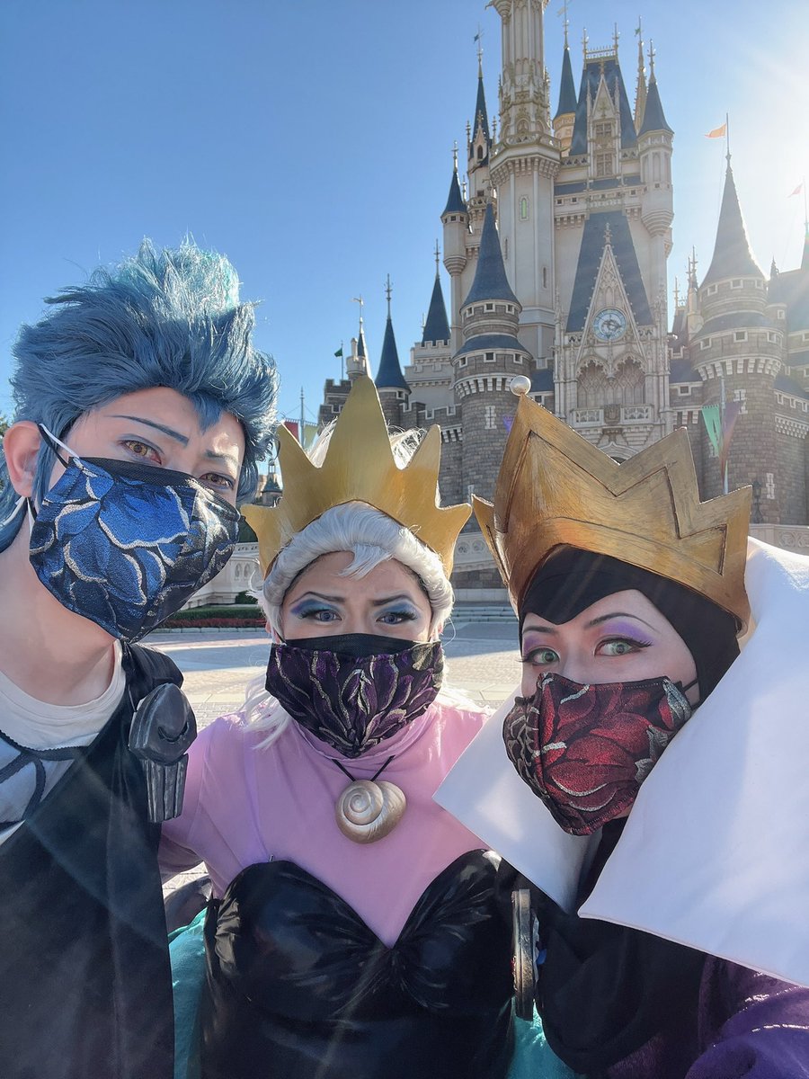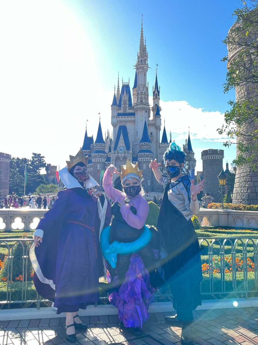 今日はディズニーランドへ行くわよ🏰 クイーン👑@pasta_al_dente マレフィセント👿@yuuri_87 ハデス💀@ConcertNote アースラ🐙@nodame_disney #Dハロ仮装2022 #Dハロ仮装