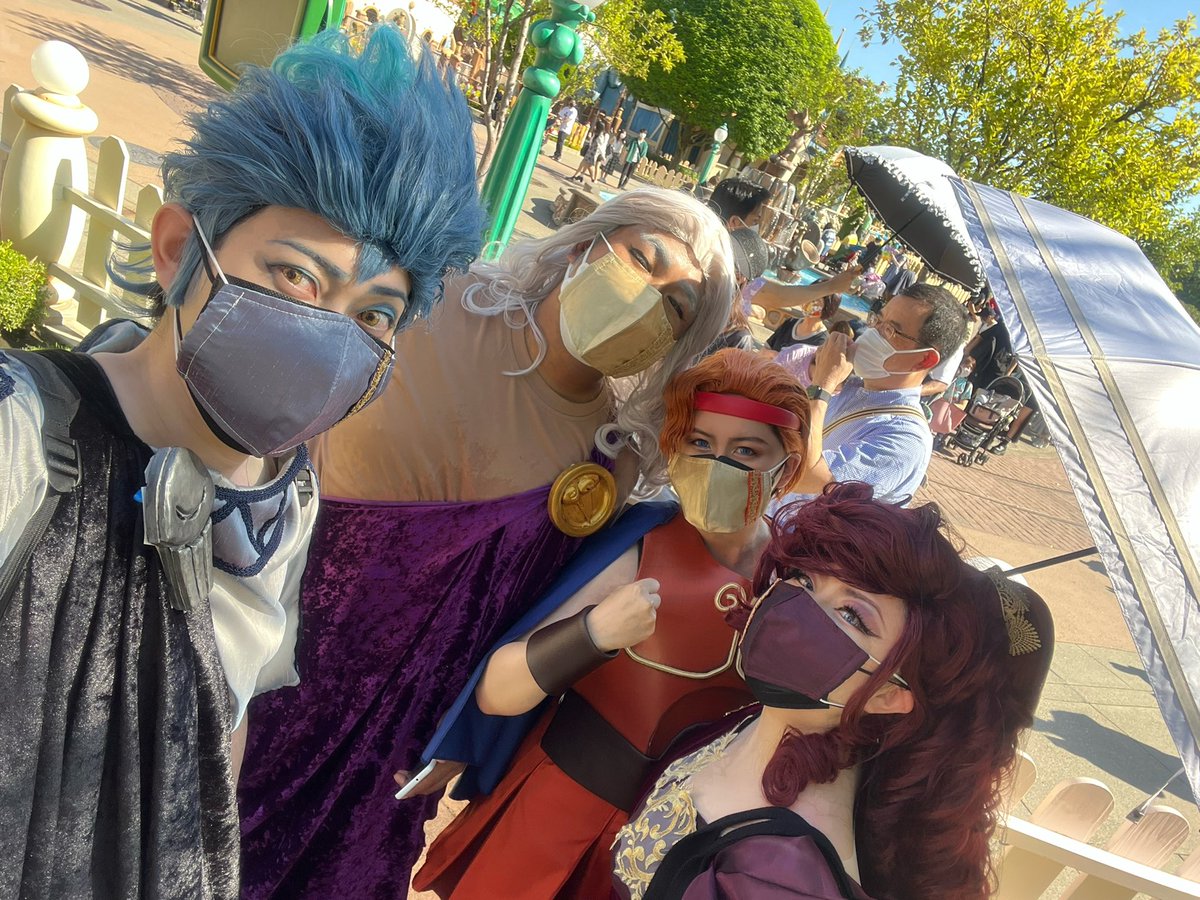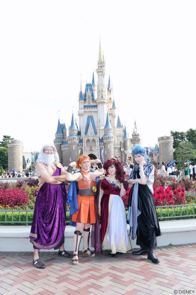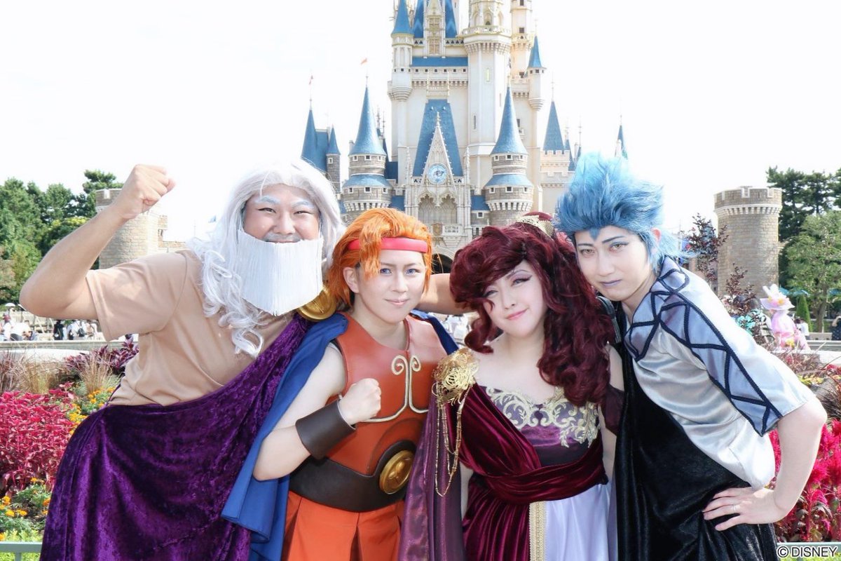 神様とヒーローがお休みだったので一緒にディズニーランドに遊びに行ってきました🏰 ヘラクレス@pasta_al_dente ゼウス@savantOZAWA ハデス@ConcertNote #Dハロ仮装2022