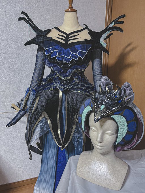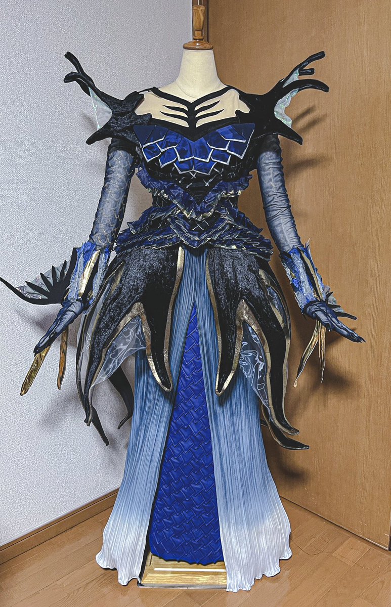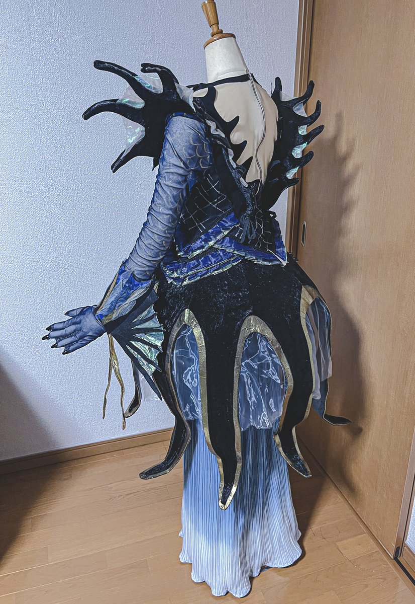 作業時間も難易度もすごかったけど、ようやく完成しました〜😭 3姉妹並べたかったので自分用、友人用、貸出用にと同じものをサイズ違いで3着分作りました💪✨ フェスティバルオブミスティーク セイレーンの末裔 共同制作@pasta_al_dente Special Thanks @urokotohane2 #Dハロ仮装2022 #Dハロ仮装