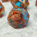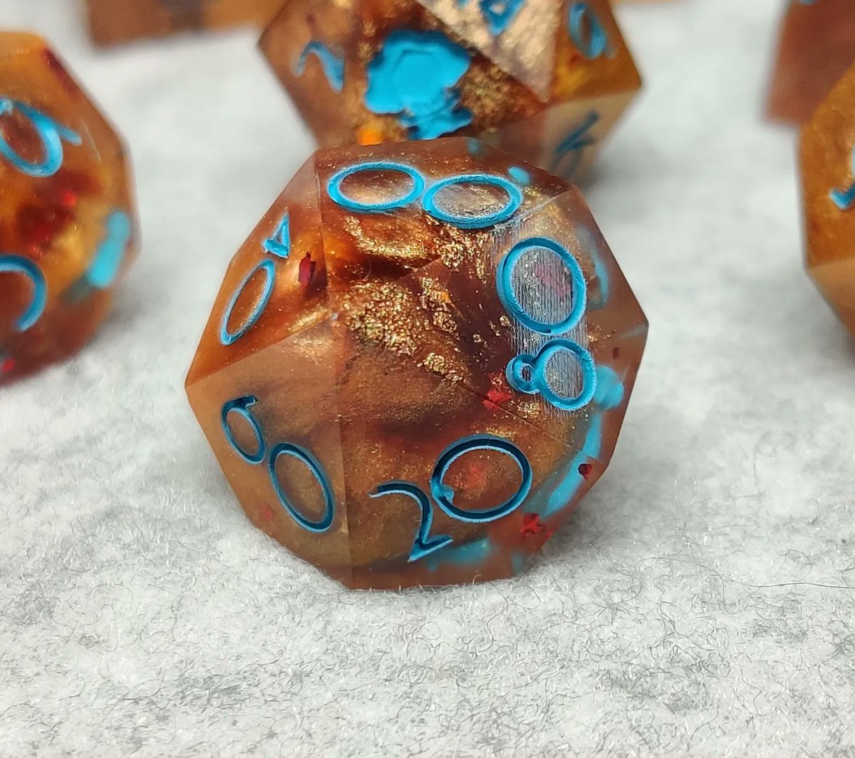 Finished the Caleb set! Caleb is a character played by @VoiceOfOBrien in @CriticalRole This is just a fan art set i made based on him! Brown and orange mica powder with red foils and inked in blue for Caleb his stunning blue eyes! #handmadedice #CriticalRoleArt