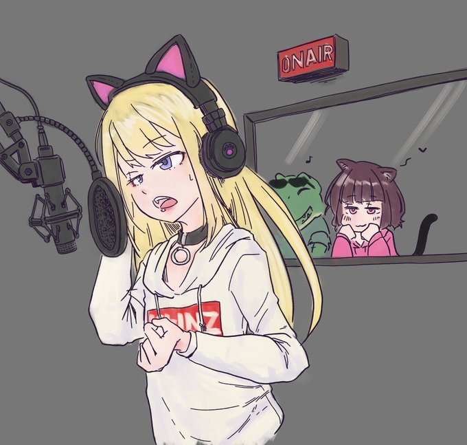 耳🎧(?)借りた #kmnzart #ワニのヤカ