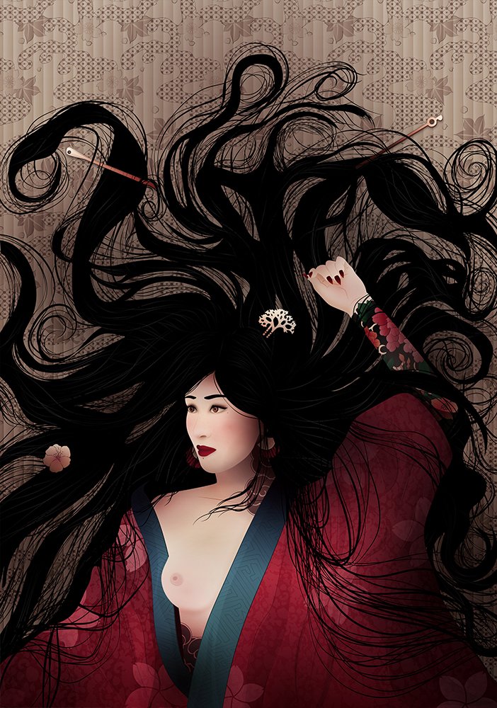 "About last night" #digitalart #society6 #kimono #woman #relax #japanesewoman #LongHair #illustration LINK: buff.ly/3ABnRNE