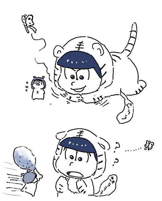 54 262 とらから奇譚で、散歩中にはぐれた🐯が妖界に迷い込んでいたのを青行燈が保護してお家に帰す構想で描いてた時の下書き、なんか捨てられなかったので供養 (🐯まだ妖怪を怖いものと分かってない) とらはまだこんなに喋れないかなってのもあった 23/01/28 01:26