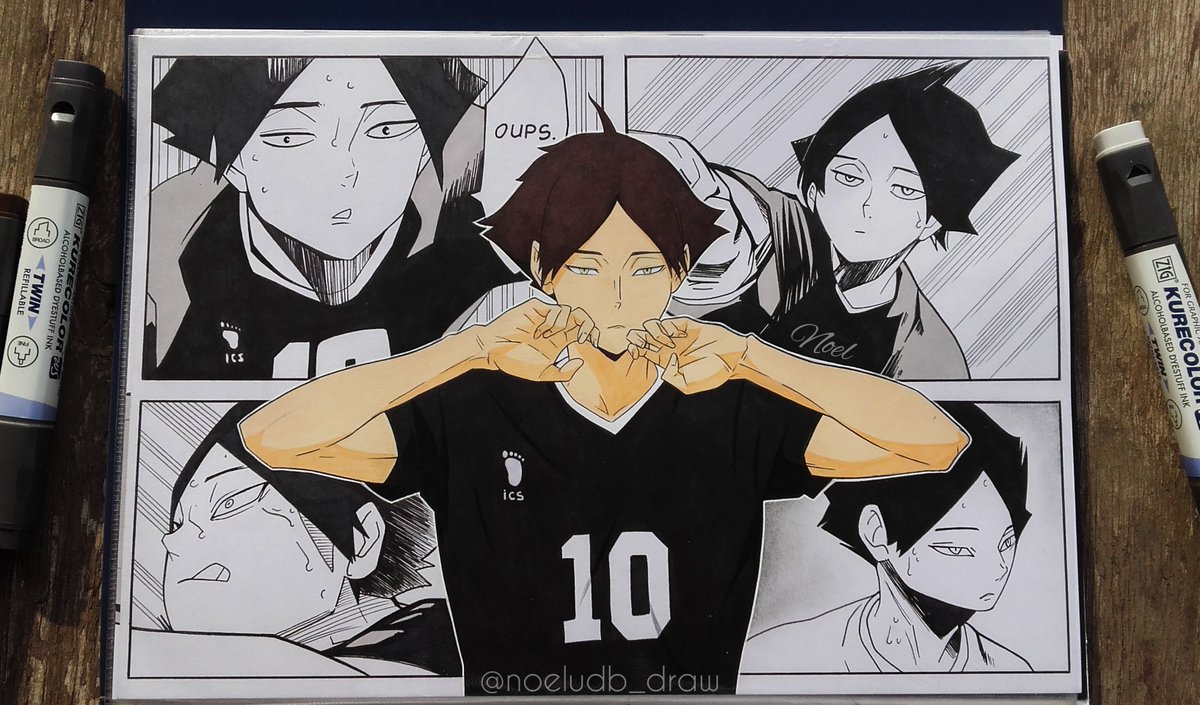 #inktober2020 Kita Shinsuke Ni así se aprecia bien pero la impaciencia me supera he hice lo que pude con poca luz en este día lluvioso. Dibujo de Kita por el día 18 de mi lista. Me gustó más colorear con lápices el panel del manga.