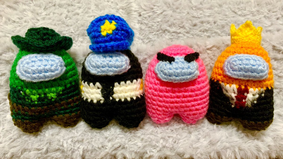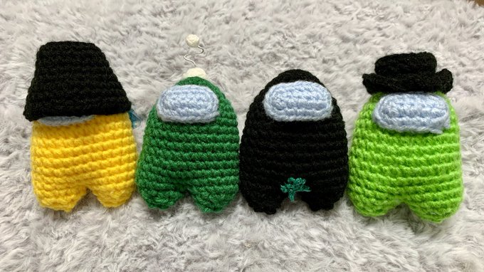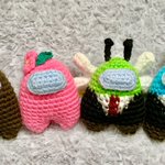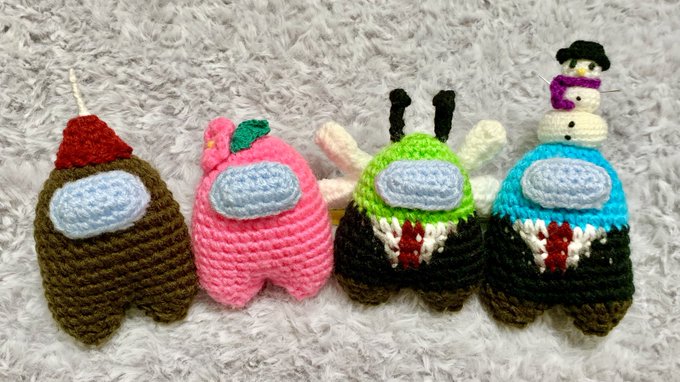 編みぐるみチーム0120!この4人の空気感がとても好きです☺️ しかし意外に皆んなシンプルだなぁ🤔 #いずにこあーと #はたアート #めー画 #狂人たろアート