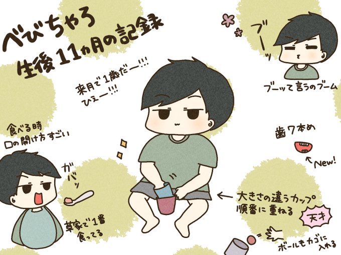べびちゃろ11ヶ月の記録 毎日にこにこ成長中🌱 ᐕ)ノ 来月の13日で1歳だよ!こわ!!