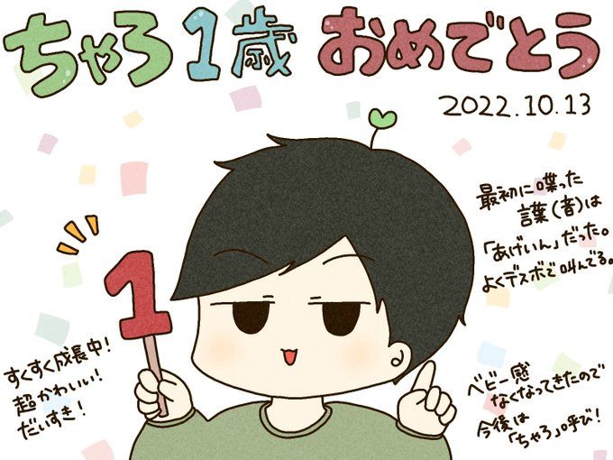 101 1173 べびちゃろ1歳おめでとう〜!!🎂🎉 いつもニコニコ可愛い! 元気に育ってくれて 父と母はうれしいです👶🏻🌱 今日はめちゃくちゃお祝いするぞ!! 22/10/13 00:12